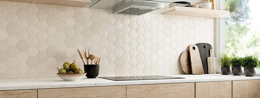 Hexagon tegels: Met hun unieke zeshoekige vorm creëren hexagon tegels een speels en trendy effect op uw muren. Ze zijn beschikbaar in diverse kleuren en patronen.