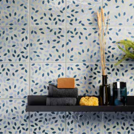 In de badkamer kun je de behanglook tegel gebruiken om een luxe en persoonlijke sfeer te creëren. Kies voor een mooi bloemmotief of een speelse print om de badkamer een frisse uitstraling te geven, of ga voor een rustieke look met een natuurgetrouwe afbeelding die perfect combineert met je badkameraccessoires.