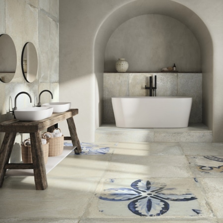 - Badkamer: Combineer betonlook tegels met hout- of marmerlook tegels voor een luxe spa-uitstraling.