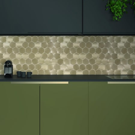 - Luxueuze uitstraling in de keuken: Creëer een elegante keukenachterwand met zilveren of koperen tegels voor een chique effect.