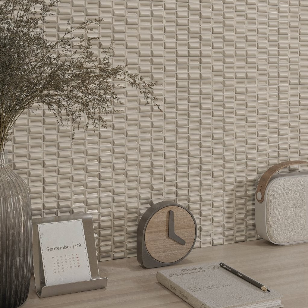 De 3D Bars Serie is een unieke collectie wandtegels met de look van mozaïek die elegantie combineert met morderne 3D-structuren. Elke tegel heeft een formaat van 12,5x25 cm en een subtiele reliëfstructuur wat diepte en dynamiek geeft aan elk oppervlak. Dankzij de verfijnde geometrie en het tijdloze ontwerp zijn de tegels perfect voor stijlvolle wandafwerkingen in keukens, badkamers en commerciële interieurs. Of je nu kiest voor een ingetogen look of een statement, met de 3D Bars collectie heb je eindeloze mogelijkheden. DEZE SERIE IS IN ONZE SHOWROOM TE BEZICHTIGEN.