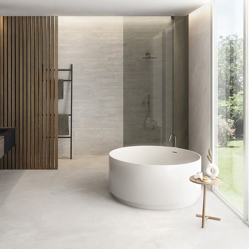Door de nieuwste reproductietechnologieën geeft de Cornerstone diverse soorten natuursteen weer met al zijn details. Deze tegel is te bezichtigen in onze showroom.