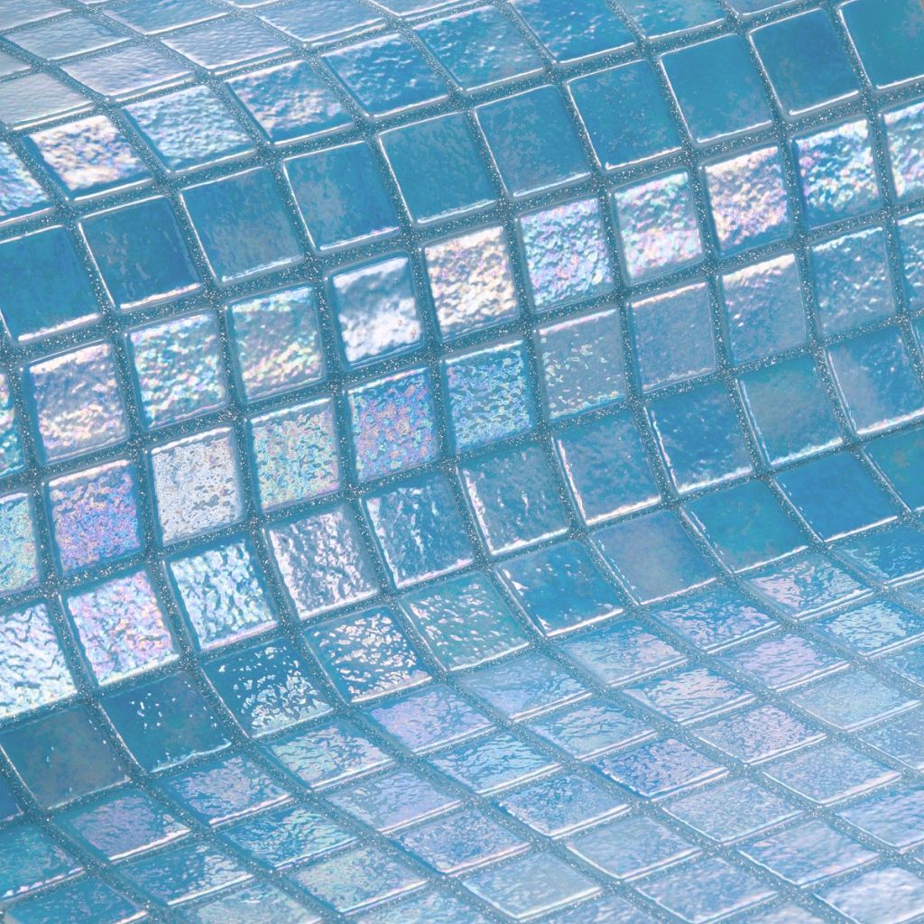 De serie IRIS, is een iriserend (parelmoer) mozaïek dat speciaal is ontworpen voor het bekleden van interieurs, zwembaden, spa's, sauna's en wellnessruimtes en bevordert ontspanning en genieten. Een traktatie voor de zintuigen. De mozaïek is vervaardigd uit duurzaam gerecycled glas, wat natuurlijk geheel milieuvriendelijk is. Om de mozaïek met elkaar te verbinden zitten er kunstof puntjes tussen de stukjes glas in plaats van op een matje geplakt. Het grote voordeel hiervan is dat de voegen tussen de mozaïek tegeltjes altijd gelijk blijven, ook bij het verwerken op ronde vormen. Deze mozaïek is in onze showroom te bezichtigen.