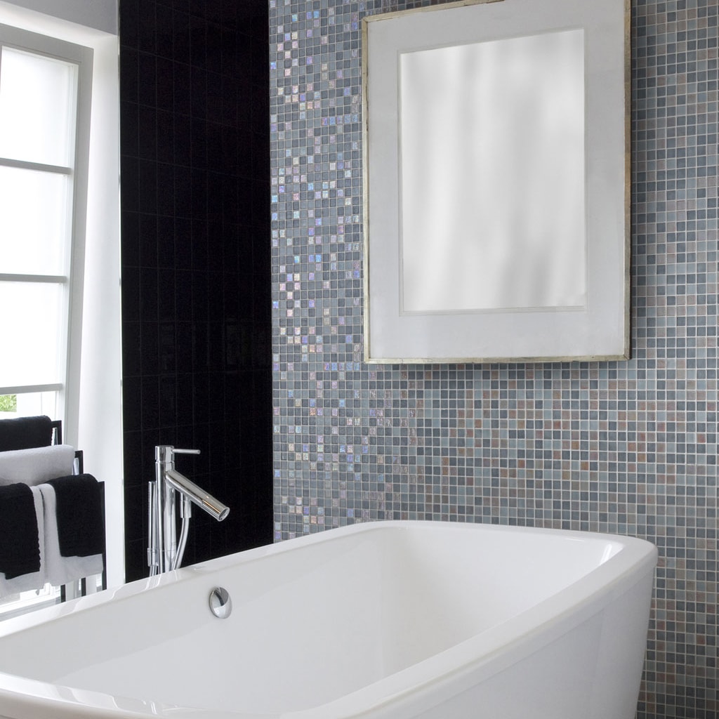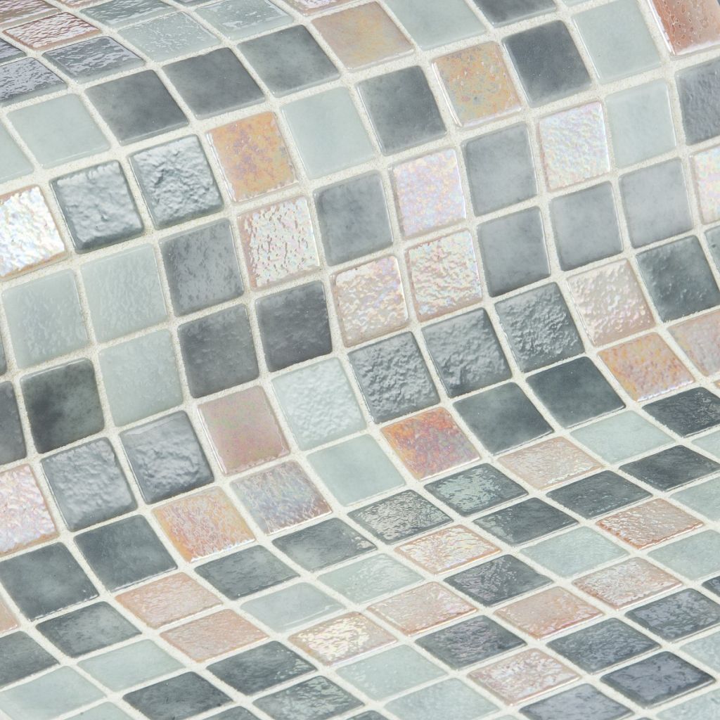 De serie IRIS, is een iriserend (parelmoer) mozaïek dat speciaal is ontworpen voor het bekleden van interieurs, zwembaden, spa's, sauna's en wellnessruimtes en bevordert ontspanning en genieten. Een traktatie voor de zintuigen. De mozaïek is vervaardigd uit duurzaam gerecycled glas, wat natuurlijk geheel milieuvriendelijk is. Om de mozaïek met elkaar te verbinden zitten er kunstof puntjes tussen de stukjes glas in plaats van op een matje geplakt. Het grote voordeel hiervan is dat de voegen tussen de mozaïek tegeltjes altijd gelijk blijven, ook bij het verwerken op ronde vormen. Deze mozaïek is in onze showroom te bezichtigen.