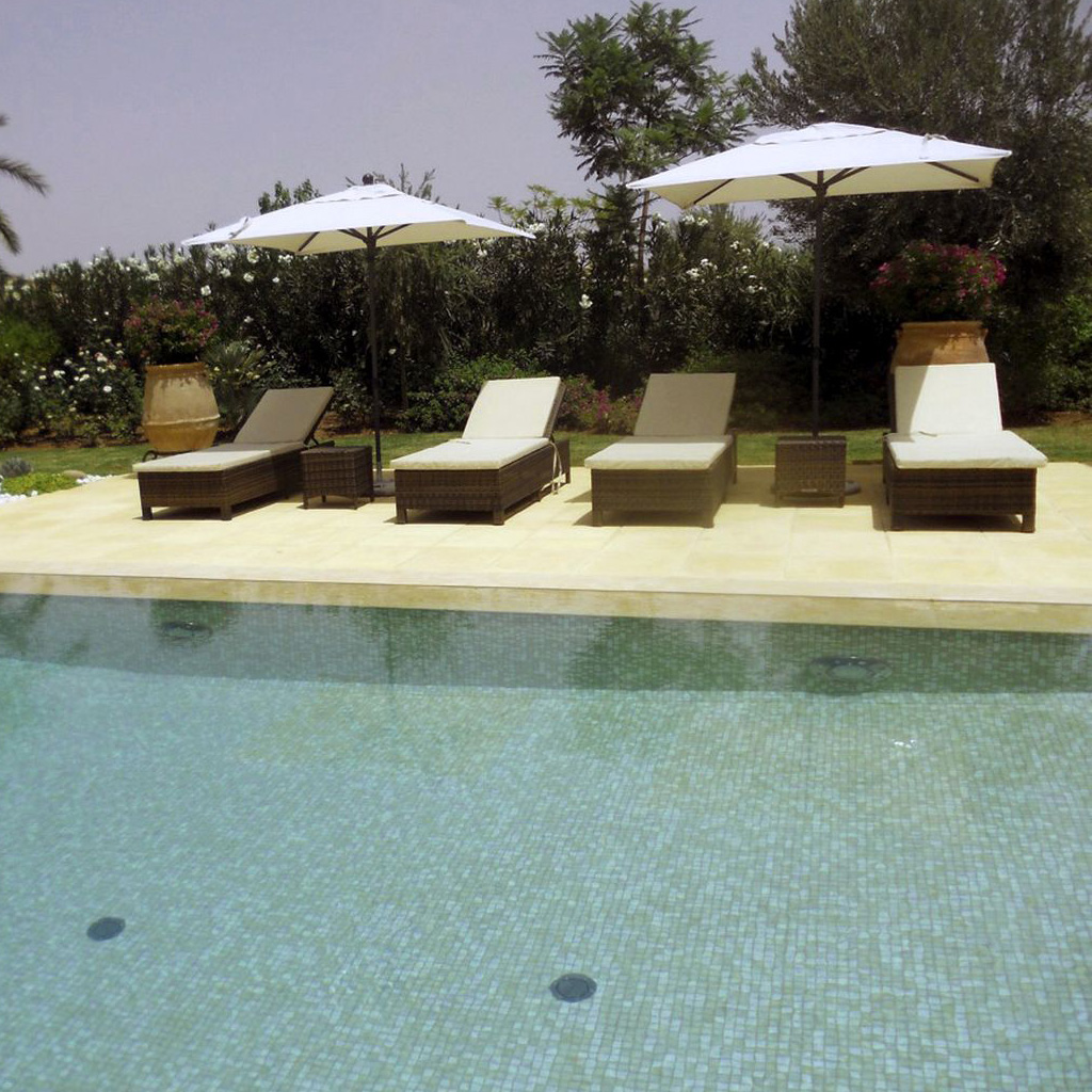 De serie IRIS, is een iriserend (parelmoer) mozaïek dat speciaal is ontworpen voor het bekleden van interieurs, zwembaden, spa's, sauna's en wellnessruimtes en bevordert ontspanning en genieten. Een traktatie voor de zintuigen. De mozaïek is vervaardigd uit duurzaam gerecycled glas, wat natuurlijk geheel milieuvriendelijk is. Om de mozaïek met elkaar te verbinden zitten er kunstof puntjes tussen de stukjes glas in plaats van op een matje geplakt. Het grote voordeel hiervan is dat de voegen tussen de mozaïek tegeltjes altijd gelijk blijven, ook bij het verwerken op ronde vormen. Deze mozaïek is in onze showroom te bezichtigen.