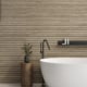 Houtlook wandtegels met verschillende decors zijn een ware eyecatcher. De keramische wandtegel is te verwerken in natte ruimtes (douche, wellness), waardoor u een warme sfeervolle uitstraling kunt creëren. De tegels zijn te bezichtigen in onze showroom.