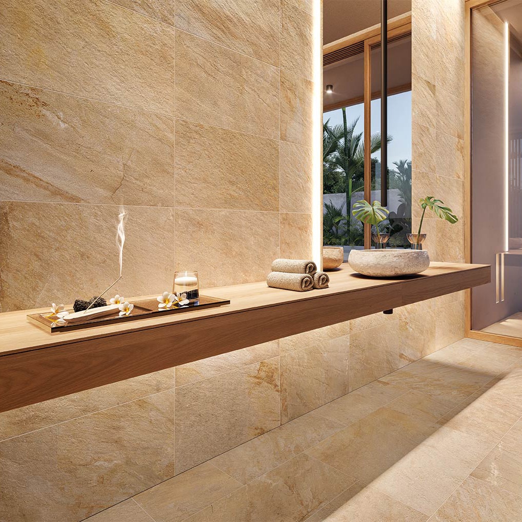 Zephyr bootst de explosie aan kleur van Bali-steen na, welke door de natuur wordt verkregen door duizenden jaren van processen van vervorming en transformatie van materie. Zowel voor binnen (1 cm dik), antislip R11 (1 cm dik) als outdoor (2 cm dik) verkrijgbaar, zodat u de woonkamer-/keuken kunt verbinden met uw terras. In onze showroom aanwezig.