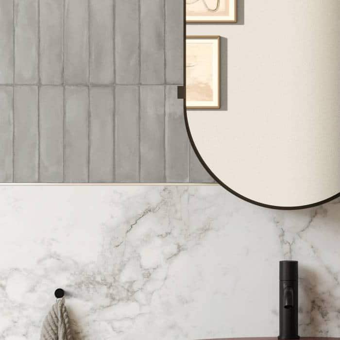 Bricksy laat zich moeiteloos combineren met hout-, beton-, natuursteen- en marmereffect tegels. Ton-sur-ton voor rust of contrasterend voor een speels design.