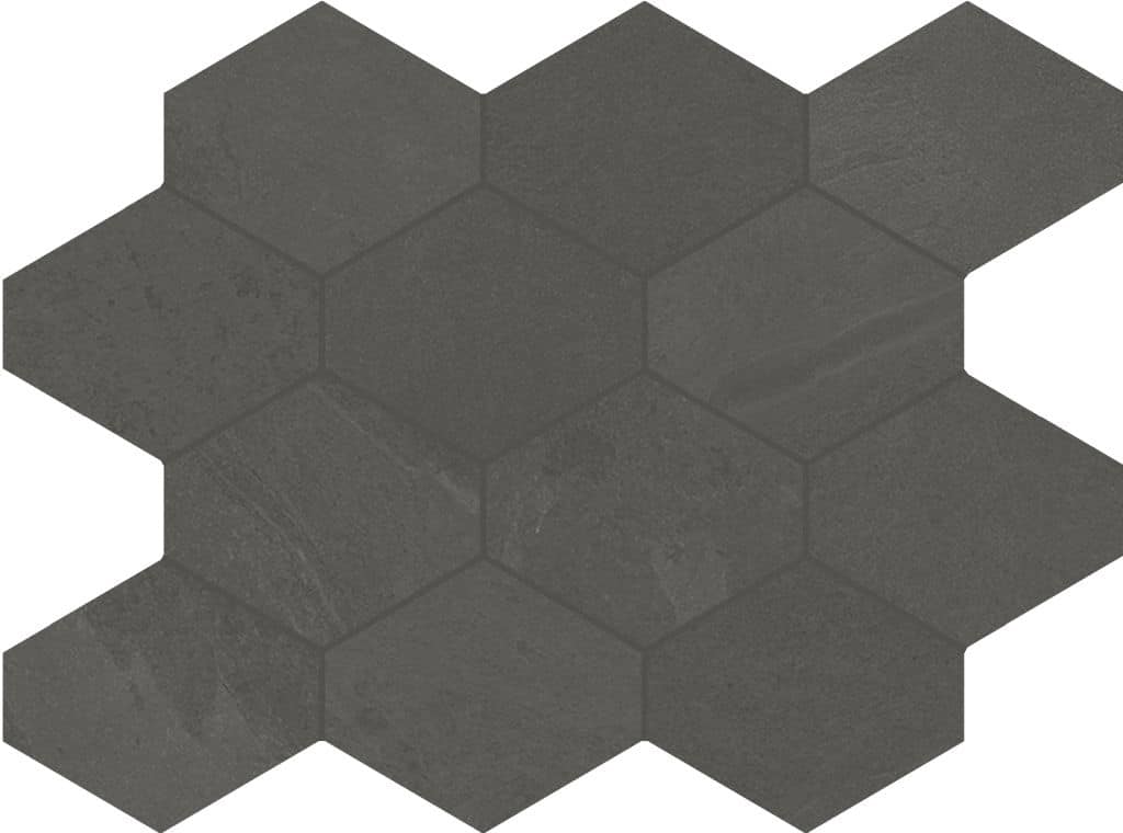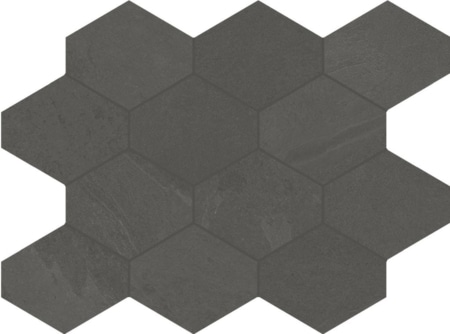 De Brazilian Slate Hexagon is verkrijgbaar per doos van 6 matjes (0,51 m² per doos). € 22,50 per matje (afmeting 25x34 cm).